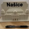 Ovaj detaljno izrađeni model vjerno prikazuje prepoznatljive elemente povijesnog dvorca u Našicama, uključujući karakteristične tornjeve, pročelje i arhitektonske ukrase. Na poleđini modela nalazi se natpis “Našice”, što dodatno naglašava njegov suvenirski karakter. Model dvorca Pejačević ističe se pažljivošću izrade.